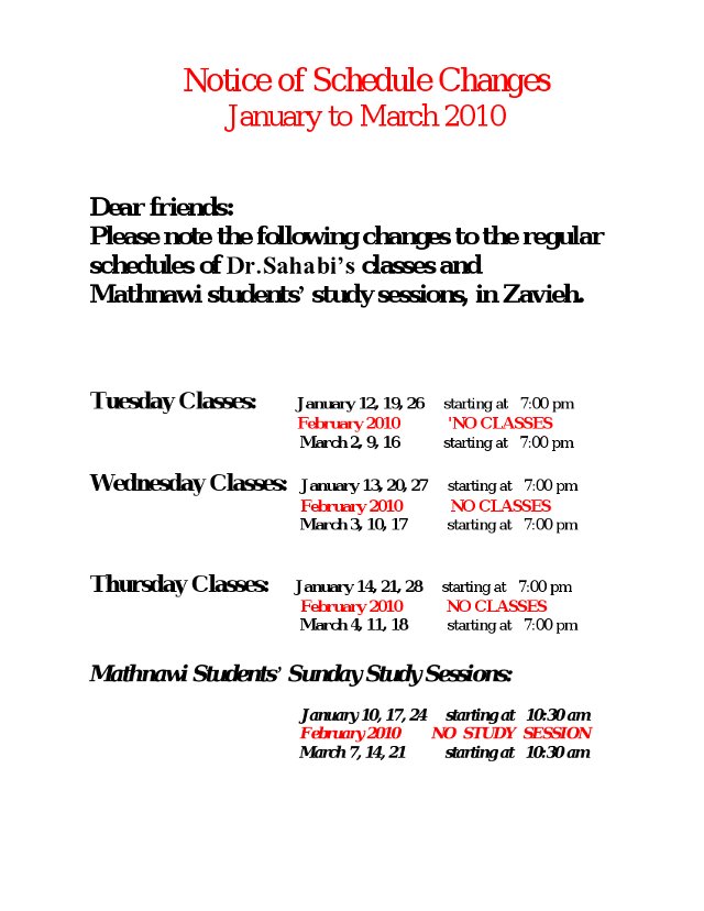 2010-01-12 Notice of Schedule Change 2010