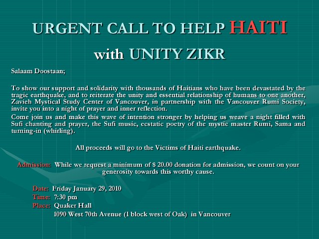 2010-01-29 URGENT CALL TO HELP HAITI with UNITY ZIKR