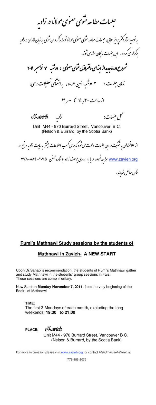 2011-10-22 Rumi’s Mathnawi Study sessions by the students of Mathnawi in Zavieh- A NEW START